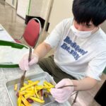 細長く切ったサツマイモを揚げると、ほんのり甘いお芋の香りがしました☺