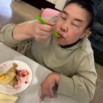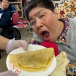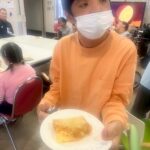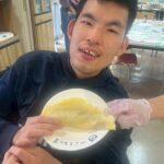 卵と牛乳とホットケーキミックスを混ぜ、ホットプレートとクレープ生地を焼く機械をダブルで駆使しながら焼き上げました✨