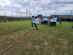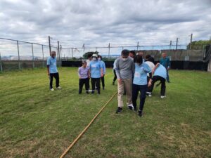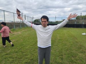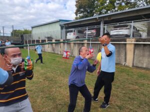 チーム対抗だったので職員も頑張ってキャッチしましたよ😎