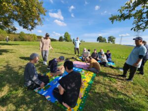 描くのが難しい利用者さんには、職員で下書きを予めしておき色塗りから頑張って頂きました🎨