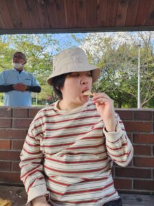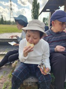 ご自身でオーブントースターのダイヤルをぐるっと回し、焼けていく様子を興味深く見守る利用者さんたち💛☺