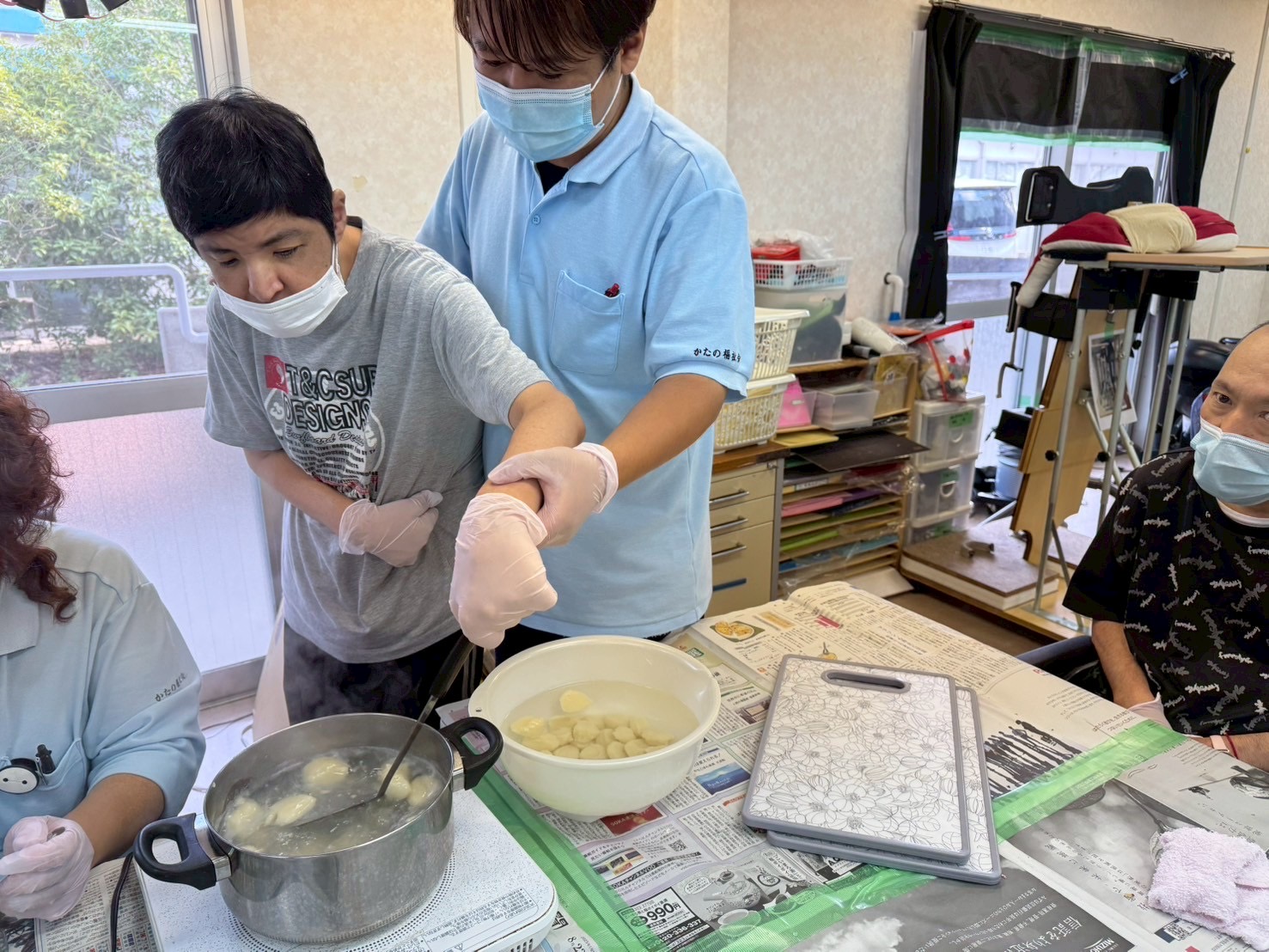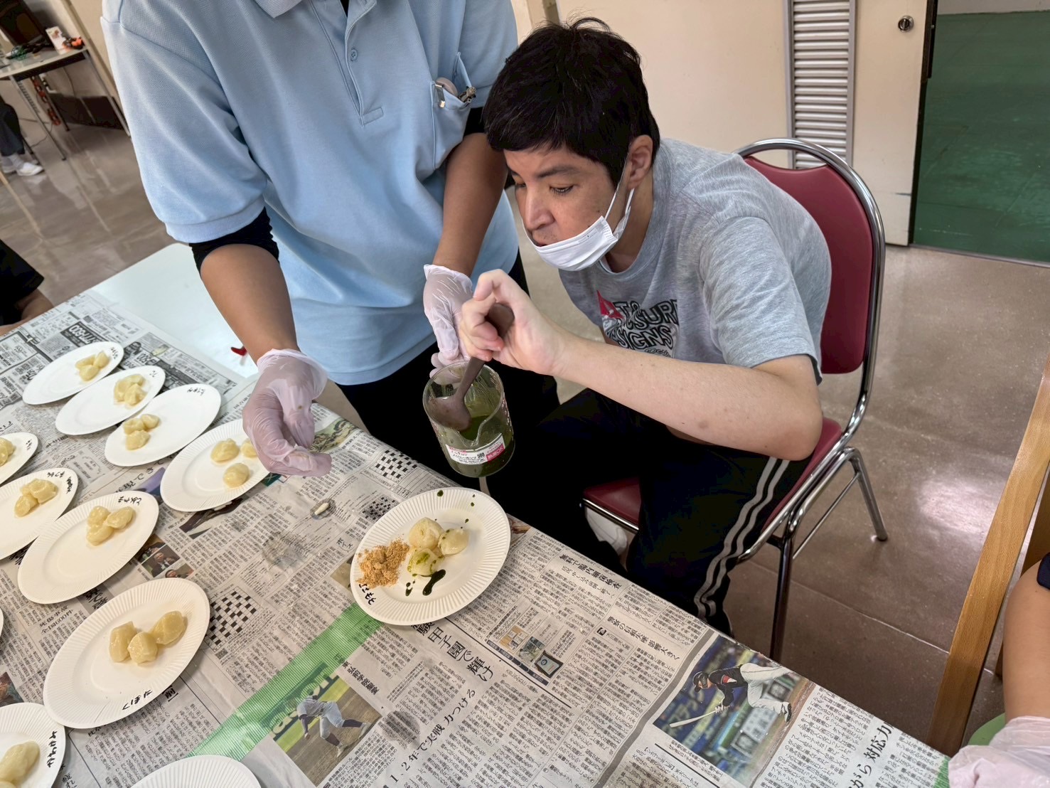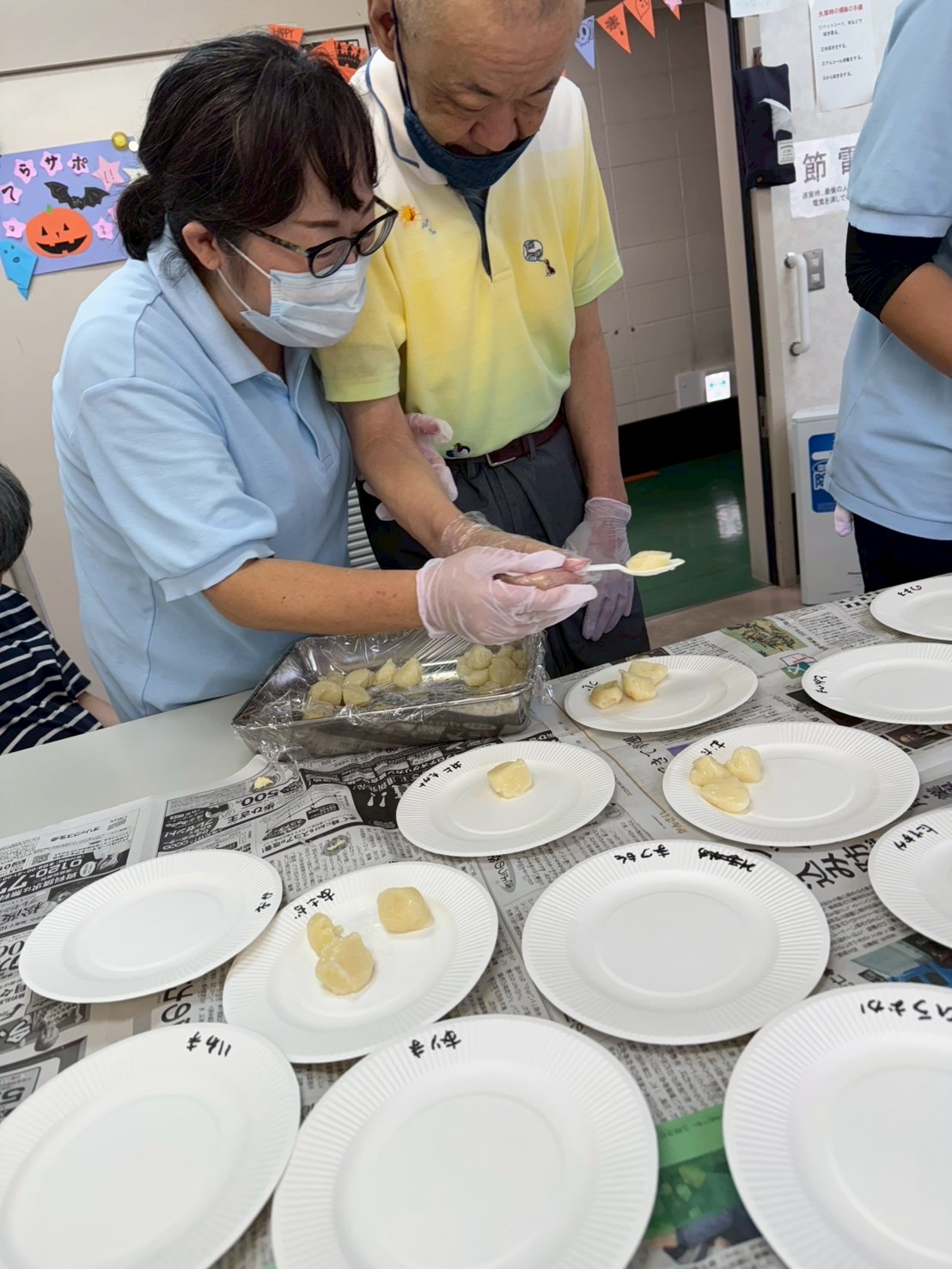 調理実習では、そのサツマイモも使ってお月見団子を作りました🍡
