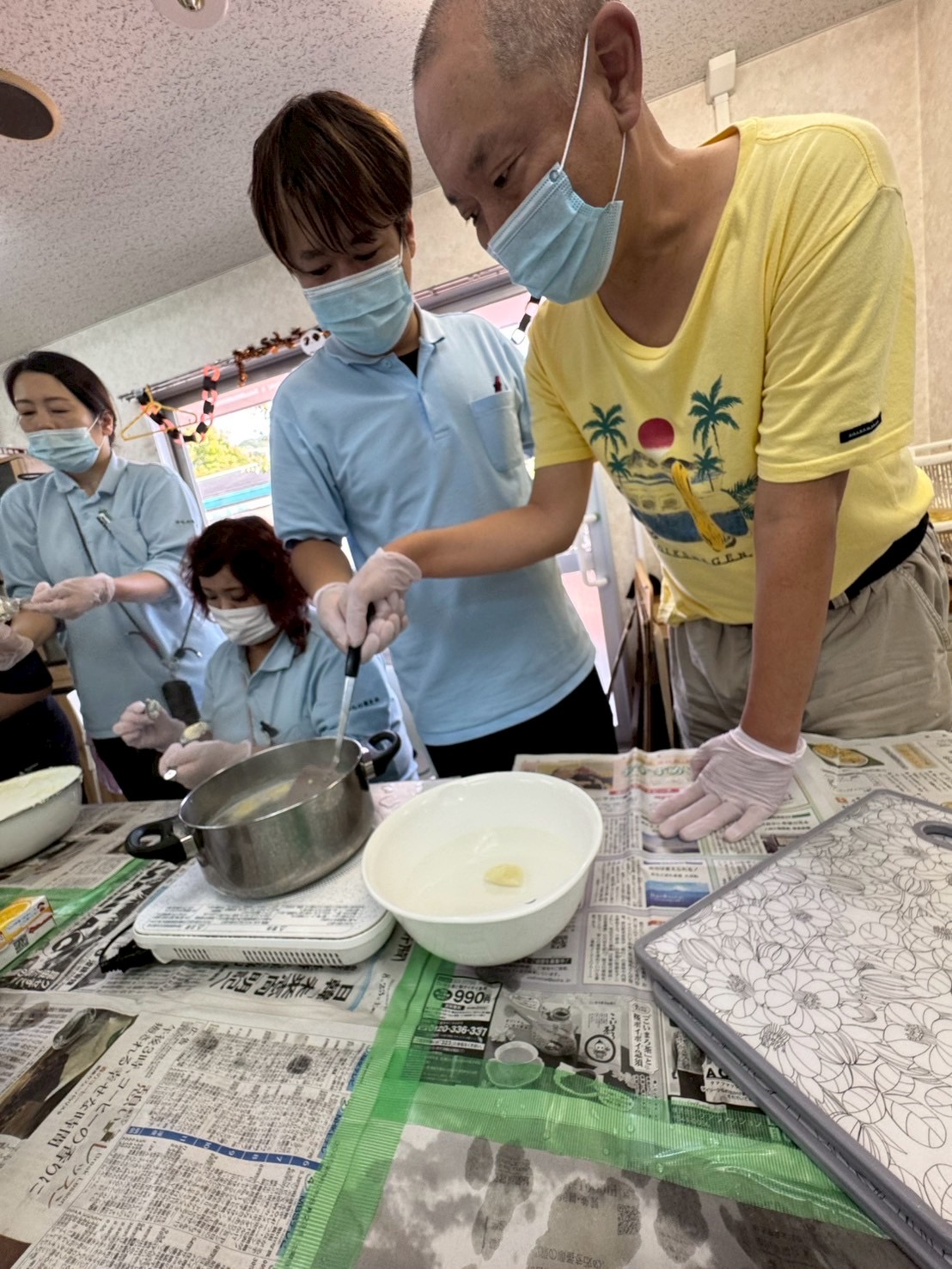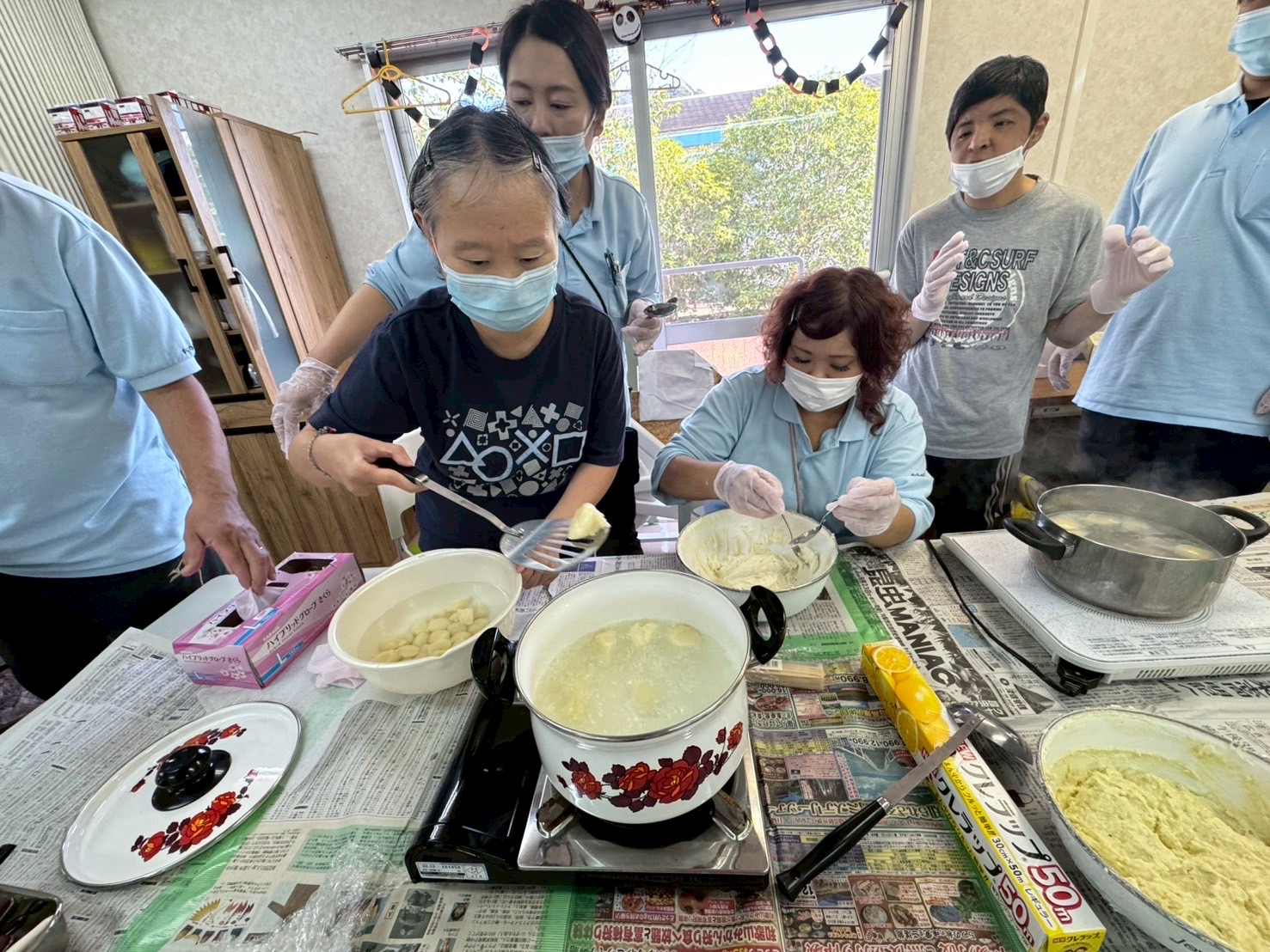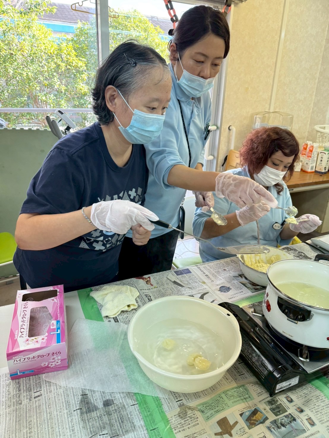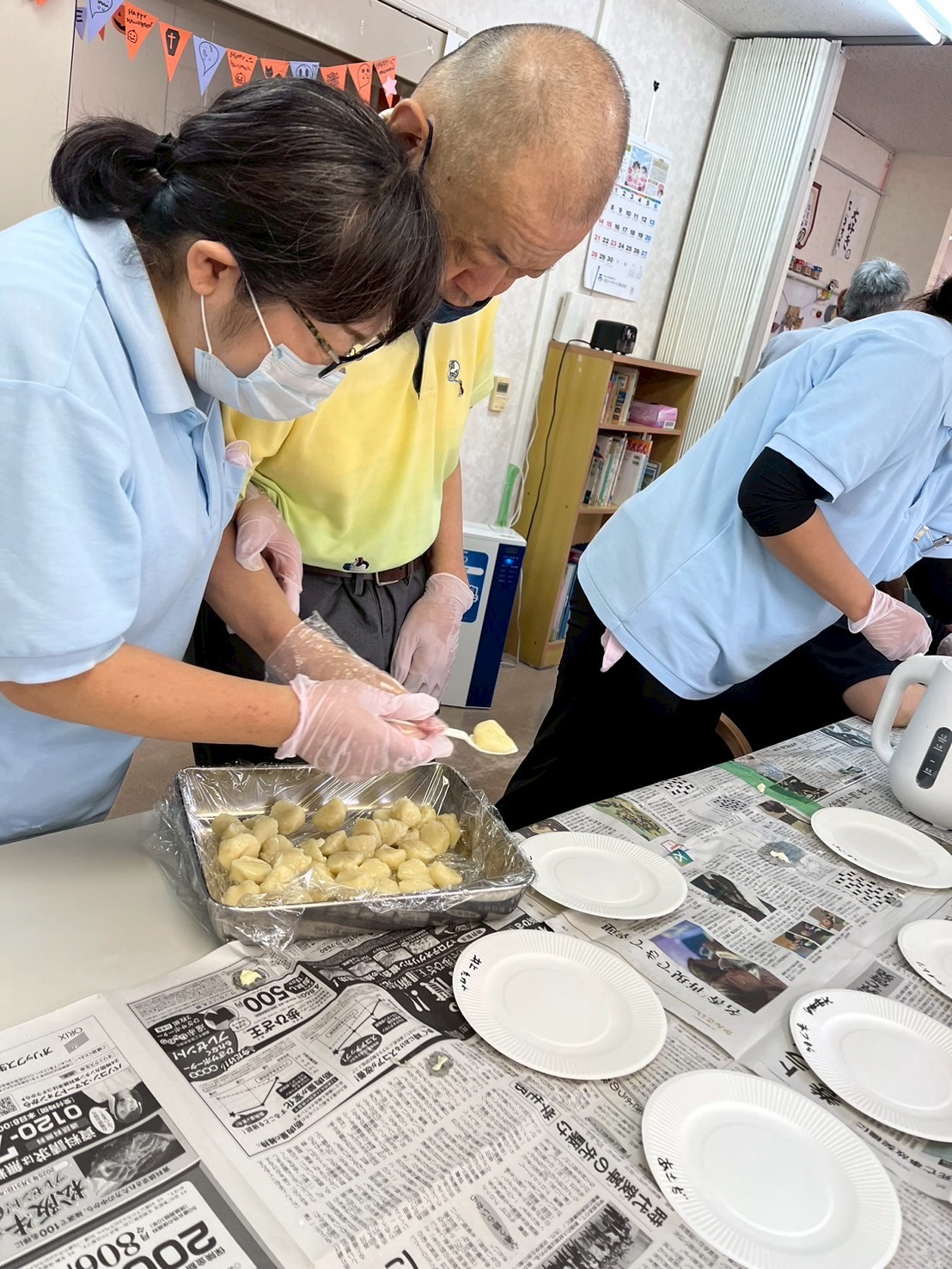 調理実習では、そのサツマイモも使ってお月見団子を作りました🍡