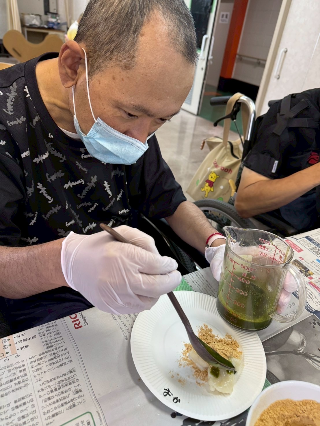 ふかしたサツマイモを練り混ぜたお団子と2種類作り、抹茶シロップときな粉をかけて頂きました☺🍴