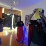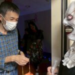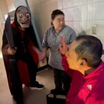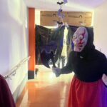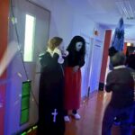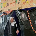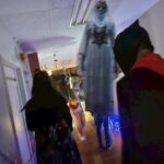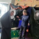 手作りのかぼちゃバックとお菓子チケットを手に、お菓子を貰いにゾンビの館を進んでいきます👻👻