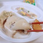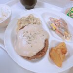メニューは”ビアンドハンバーグホワイトソースがけ” ”ローストポテト” ”ごぼうサラダ”