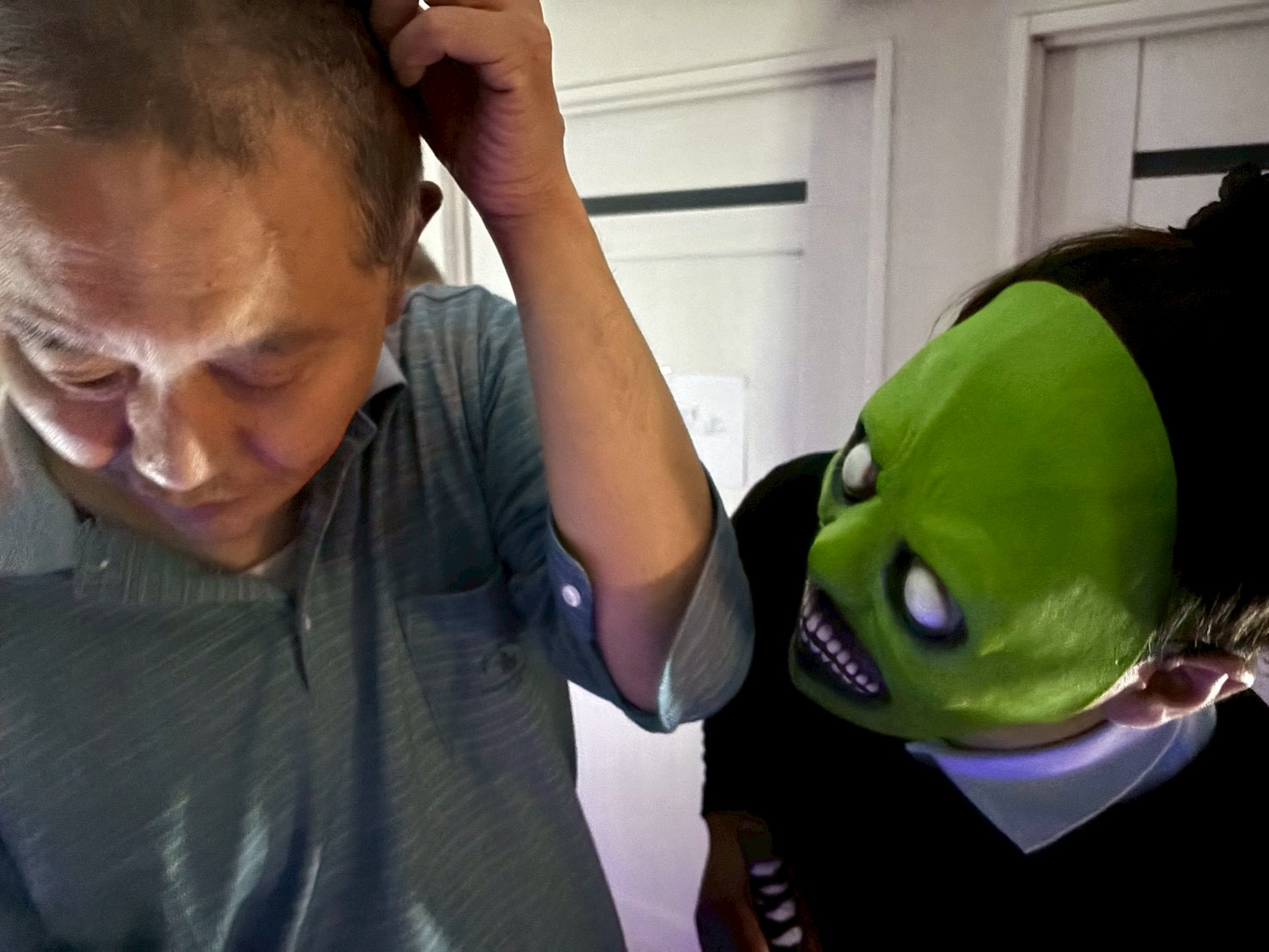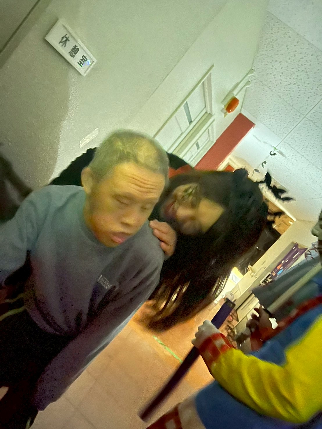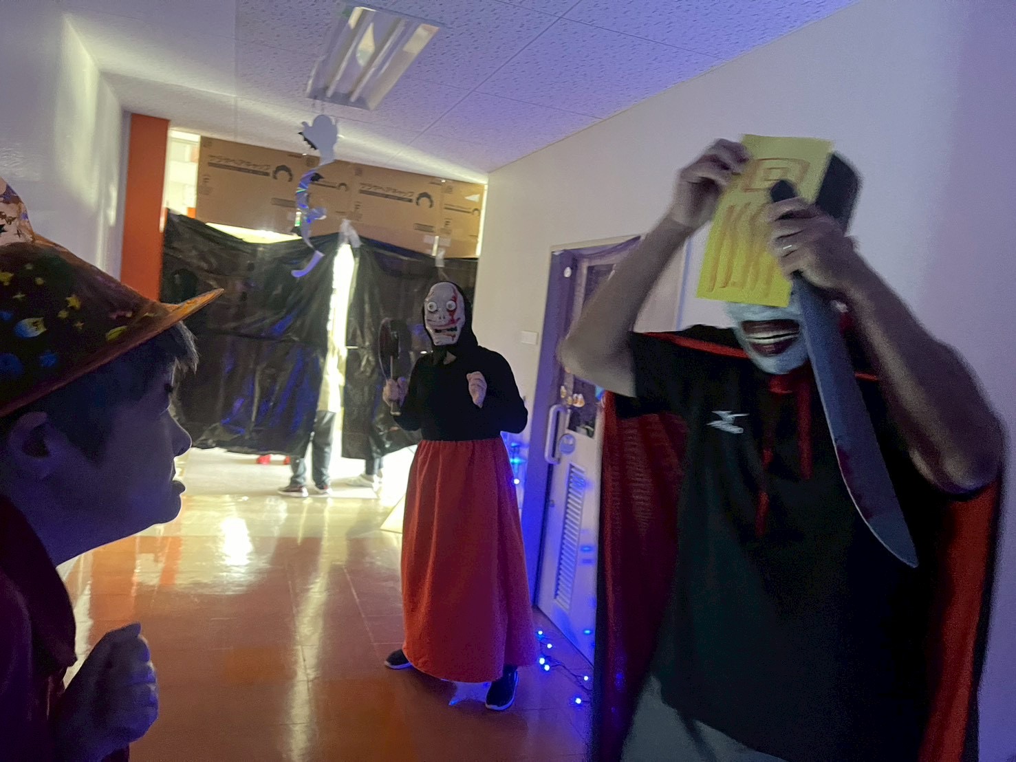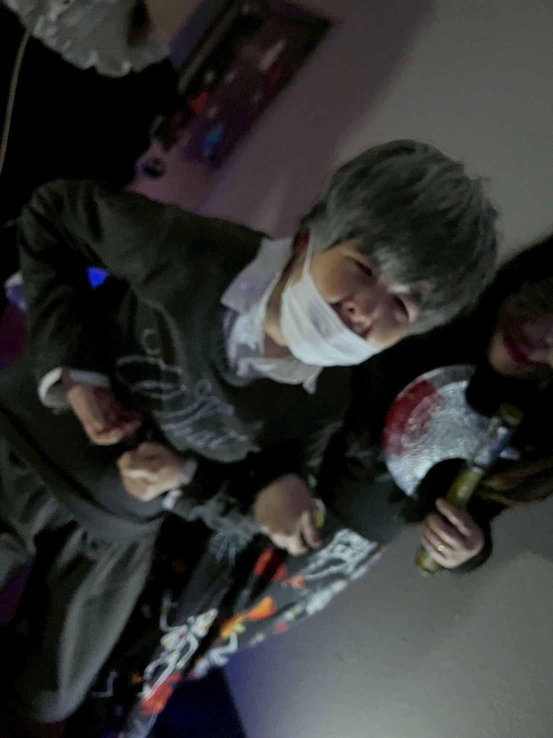 手作りのかぼちゃバックとお菓子チケットを手に、お菓子を貰いにゾンビの館を進んでいきます👻👻