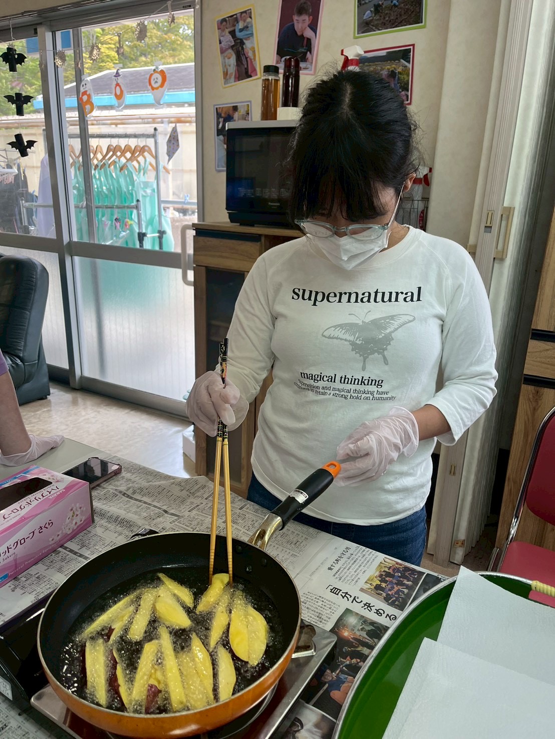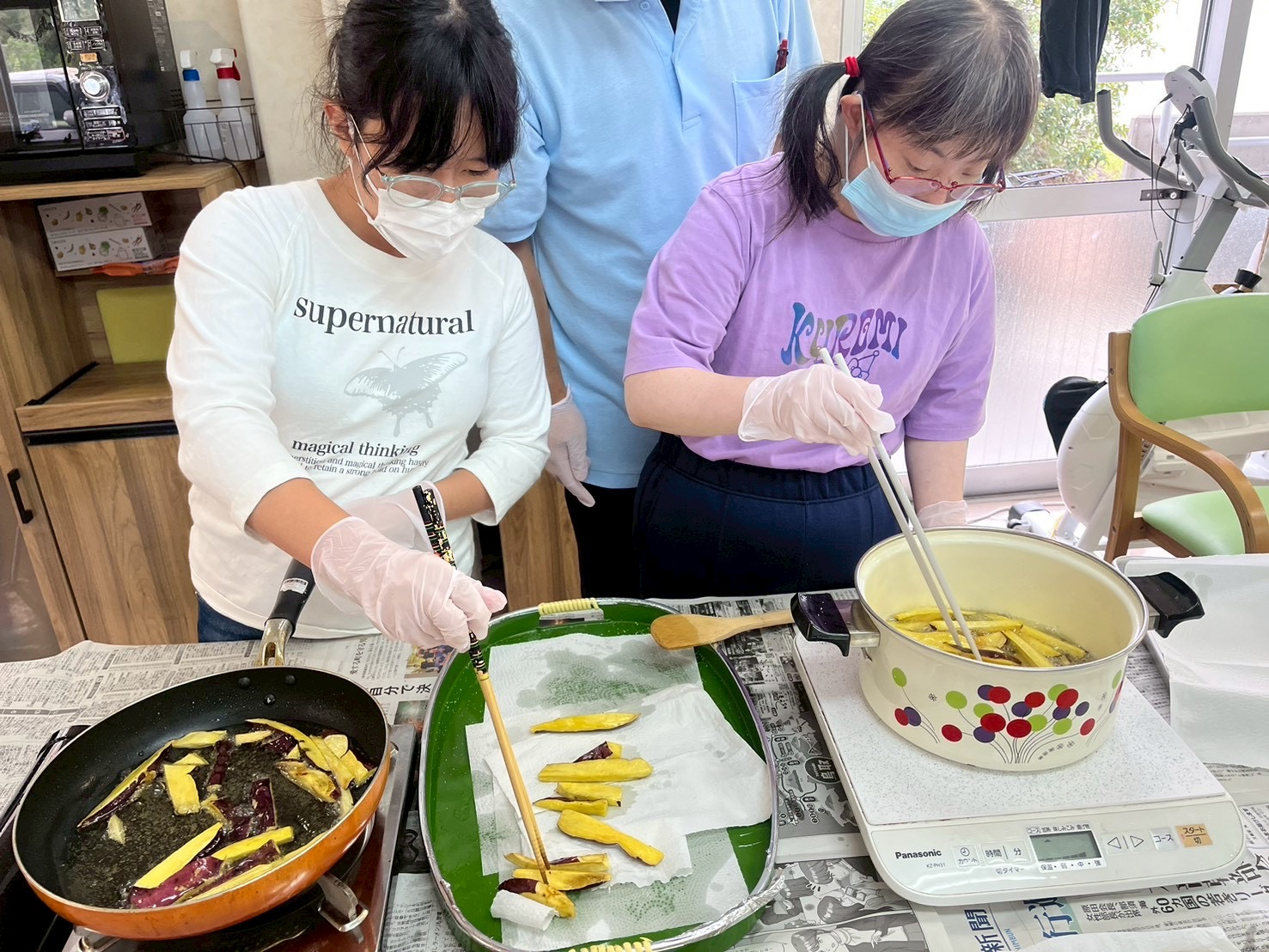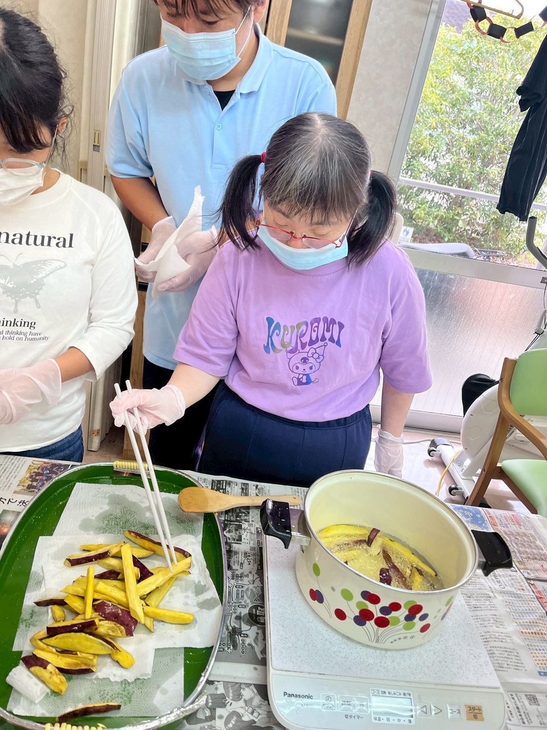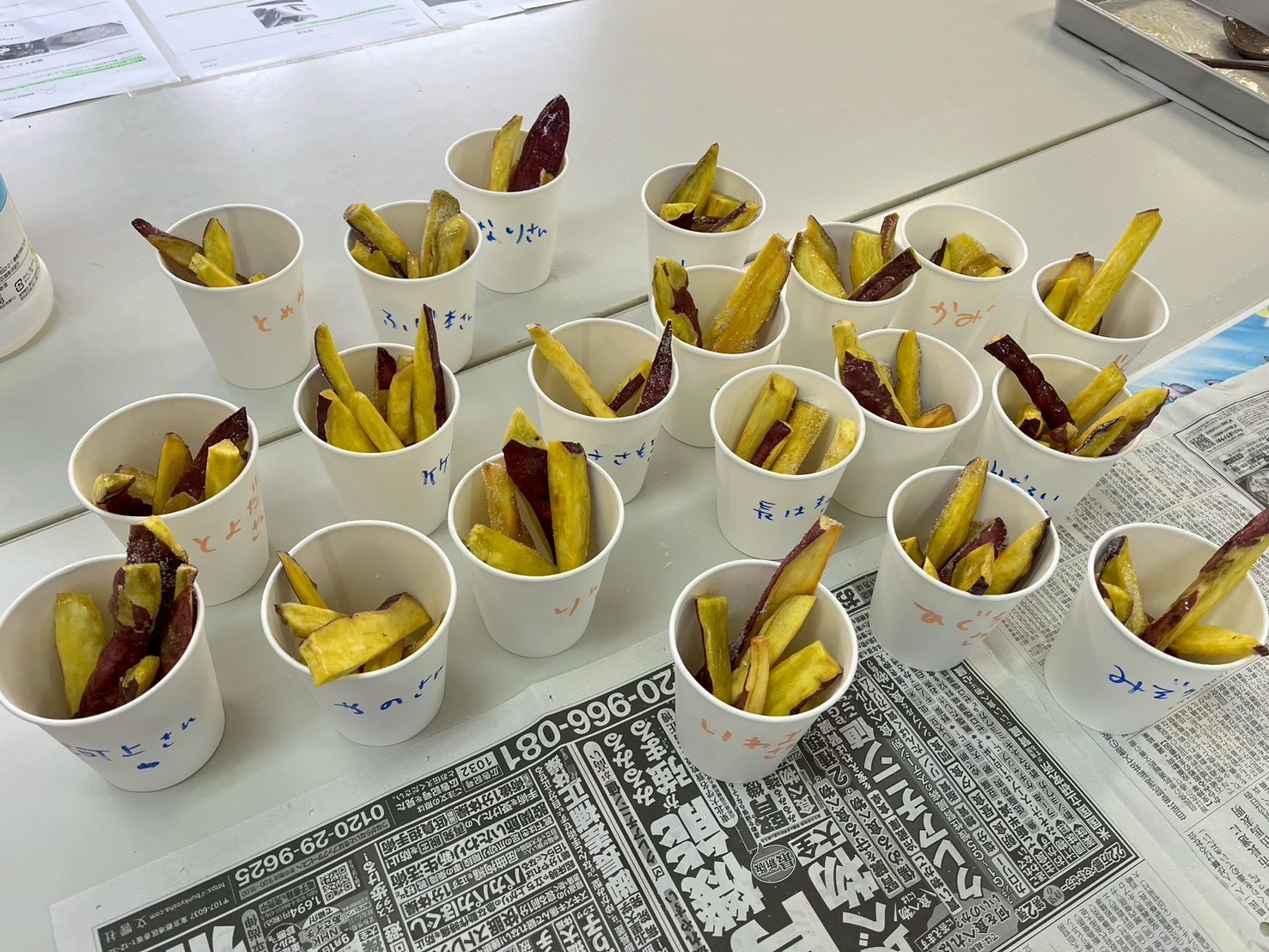 細長く切ったサツマイモを揚げると、ほんのり甘いお芋の香りがしました☺