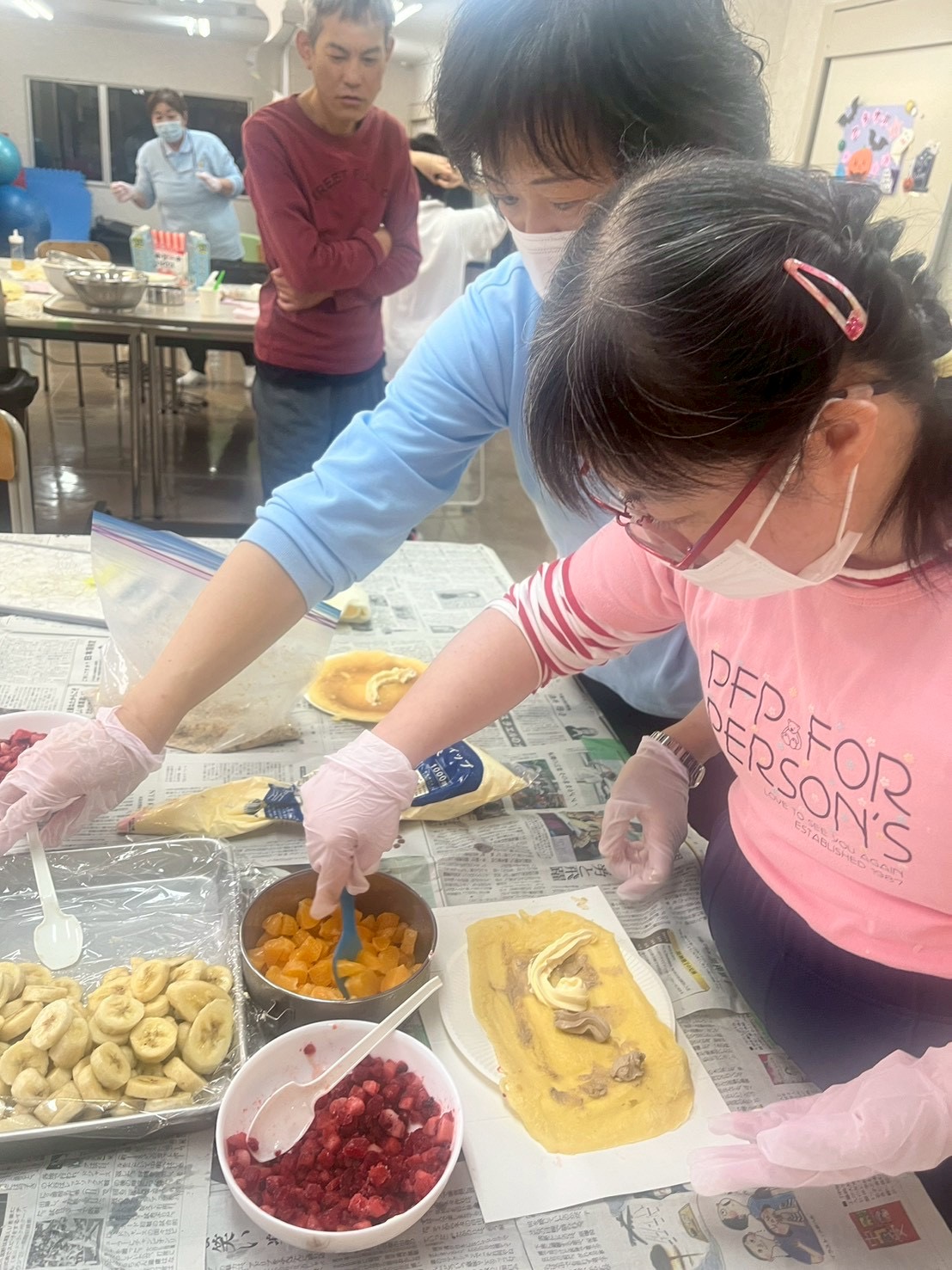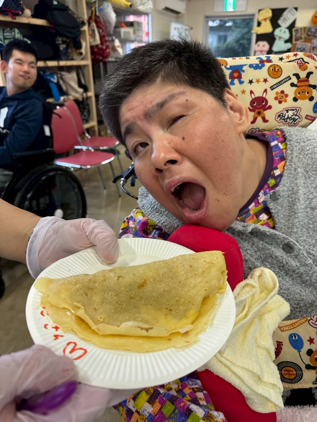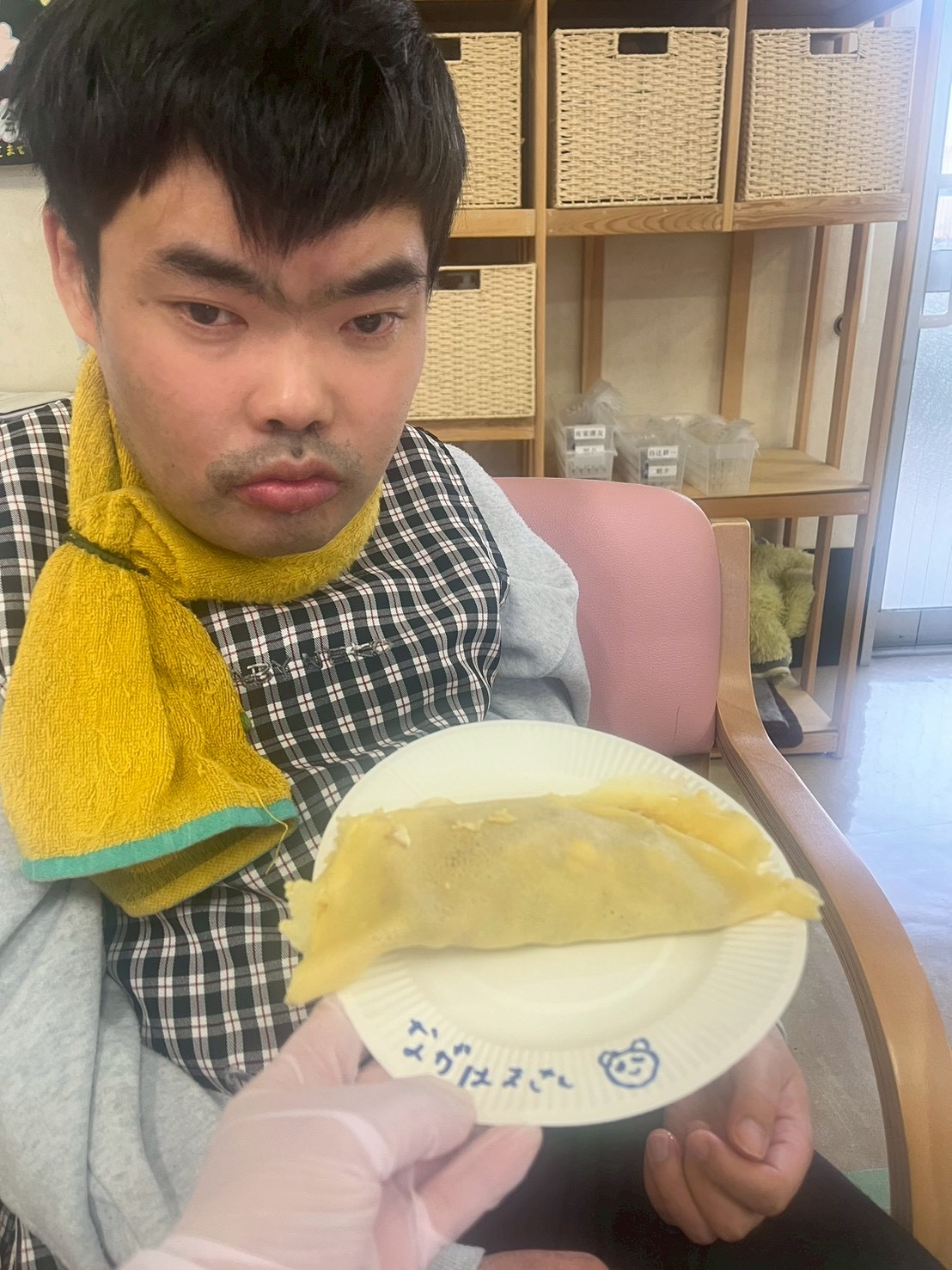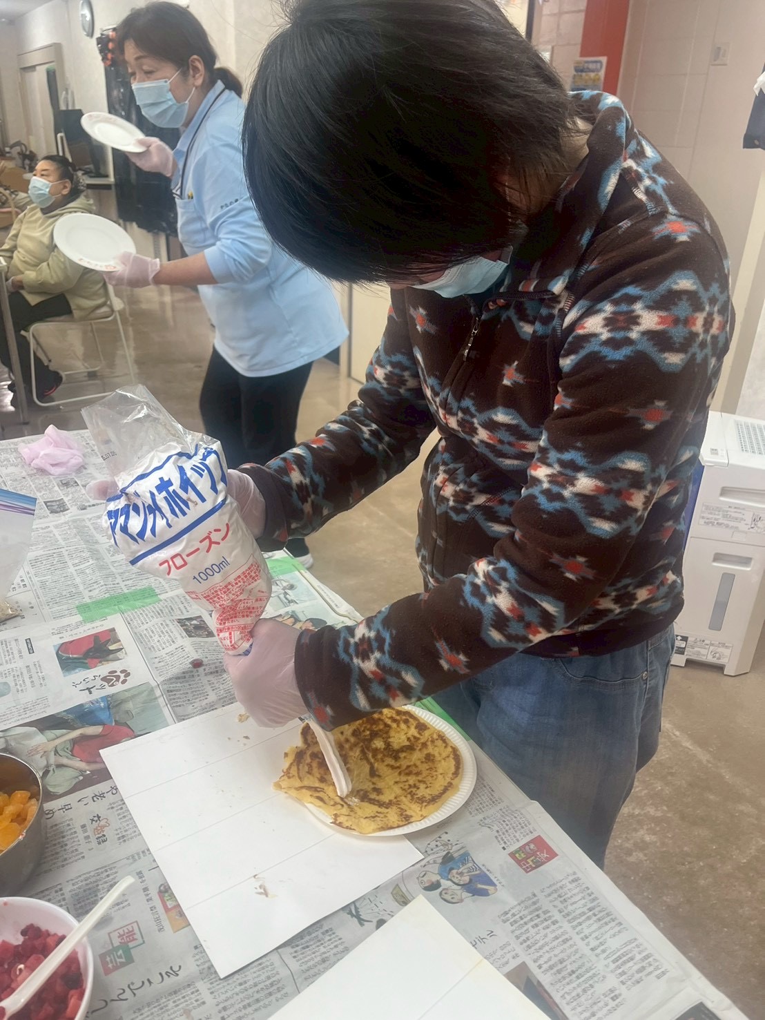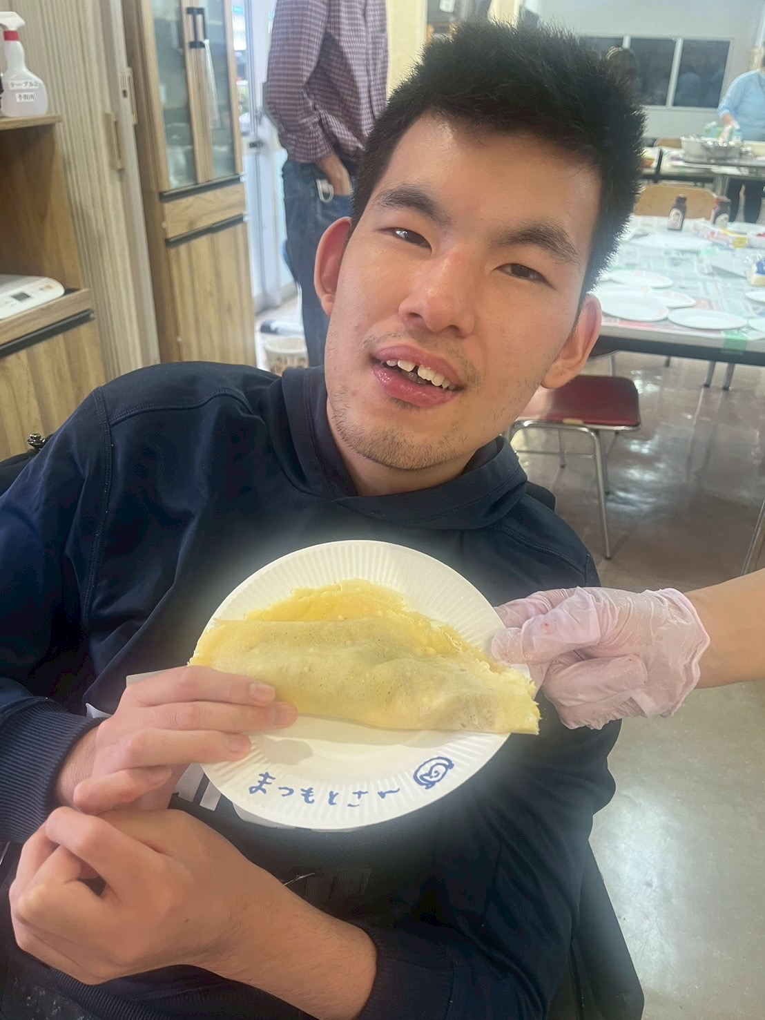 卵と牛乳とホットケーキミックスを混ぜ、ホットプレートとクレープ生地を焼く機械をダブルで駆使しながら焼き上げました✨