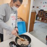 材料は、バジル、玉ねぎ、パプリカ、ピーマン、鶏肉、卵です。隠し味にオイスターソースを使います。