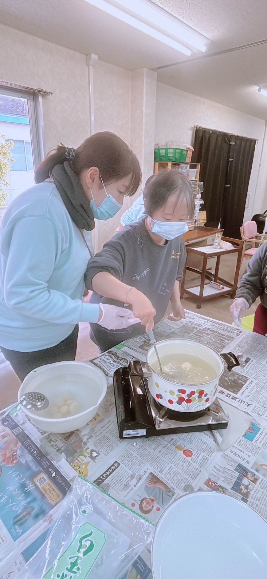 茹で上がったお団子を上手にすくって取り分けて下さいました👌