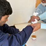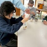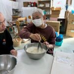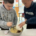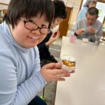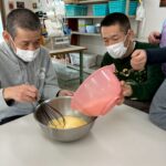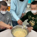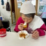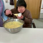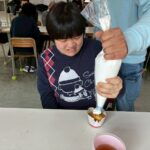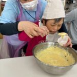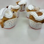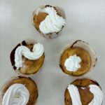 オーブンで焼いていきます。焼きあがったカップケーキにたっぷりと生クリームをのせますね。