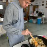 そしてご飯、キャベツ、お肉を炒めていきます。ソースを入れて、おいしくな~れ