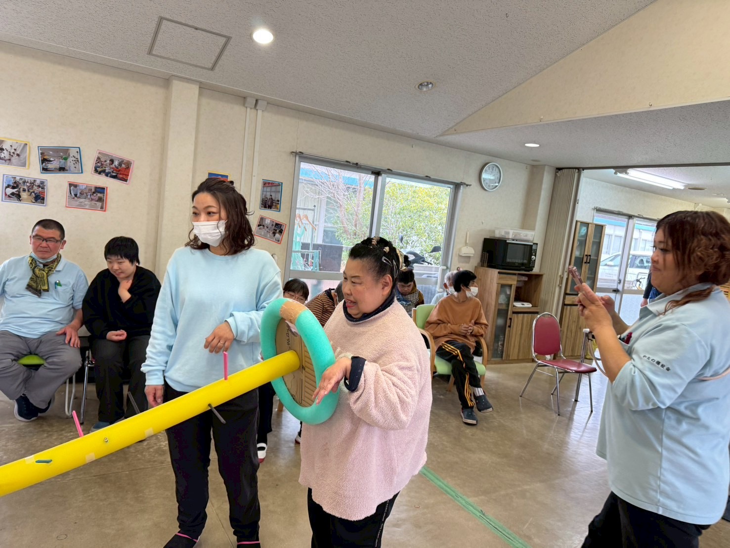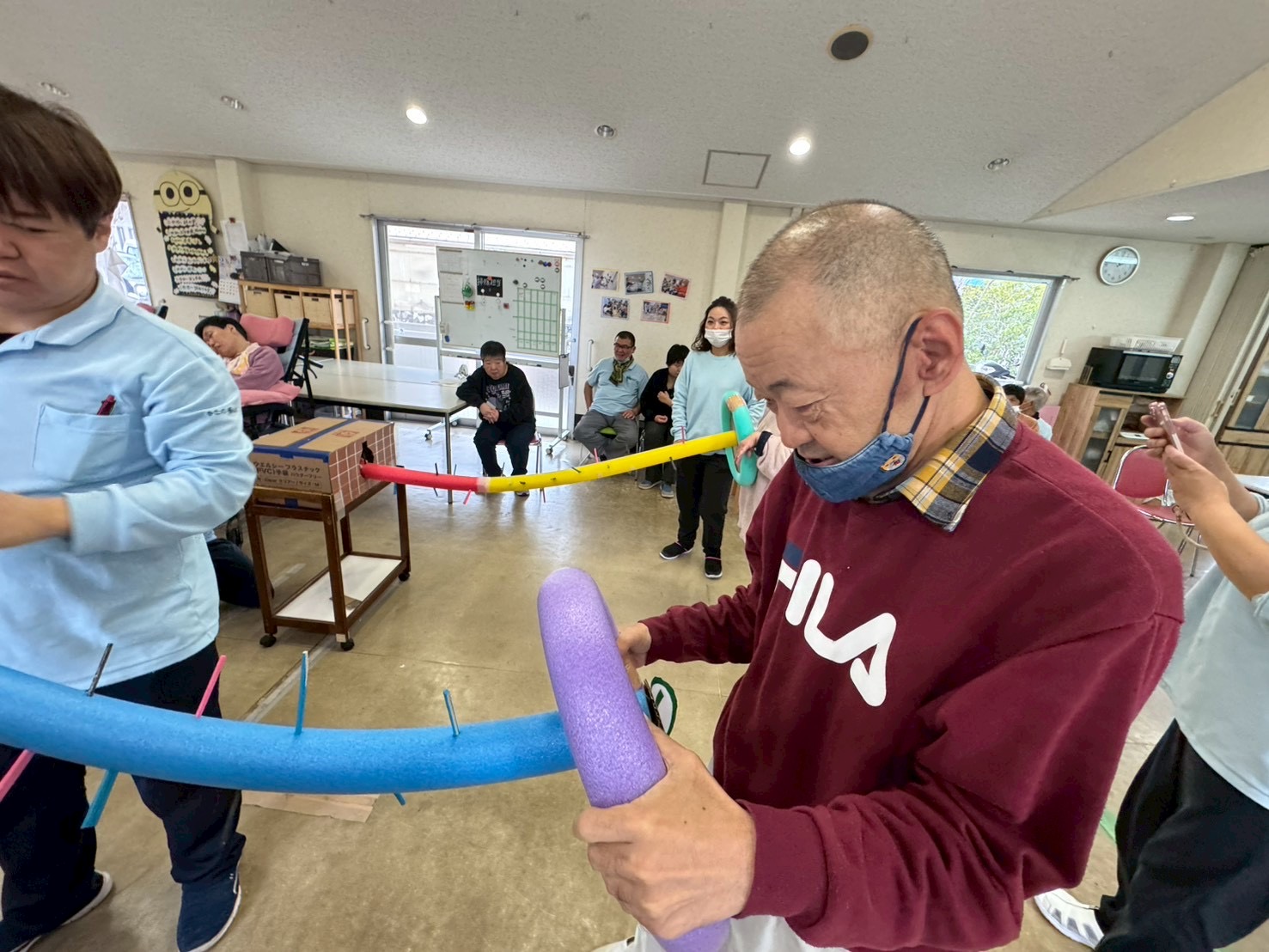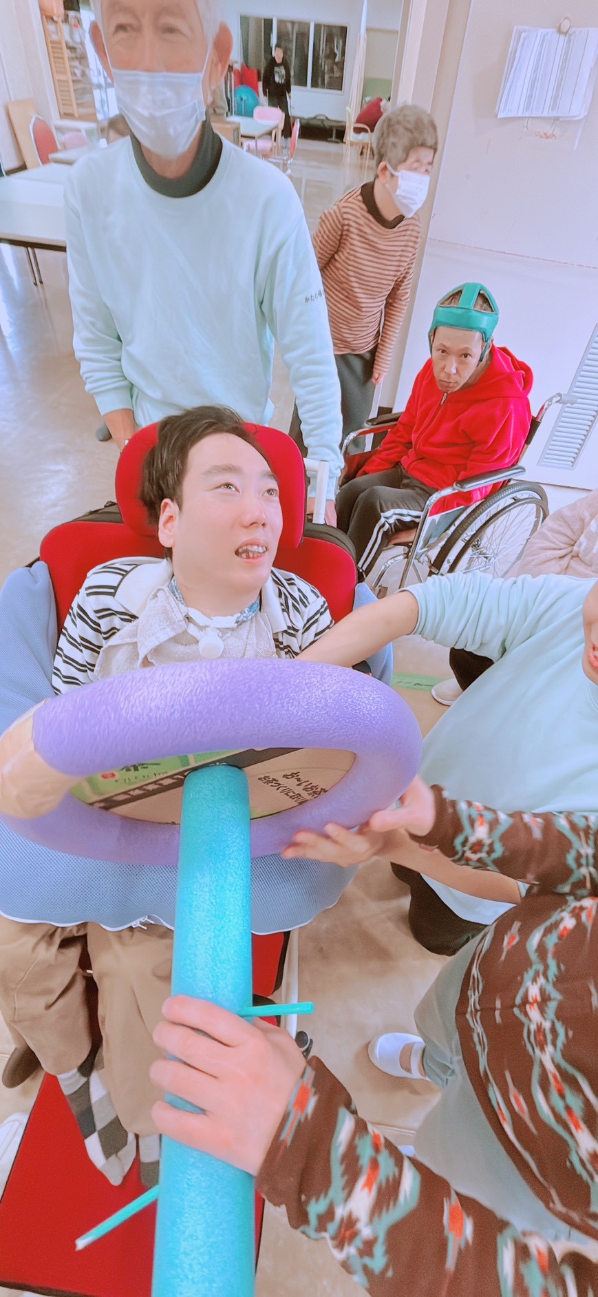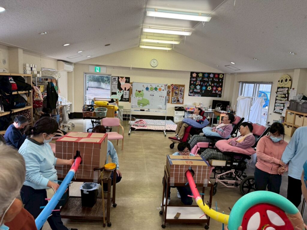 先日、担当者レクリエーションをしました。職員さんが事前に準備されたグッズを見て利用者さんは何をするのかな~とワクワク😀