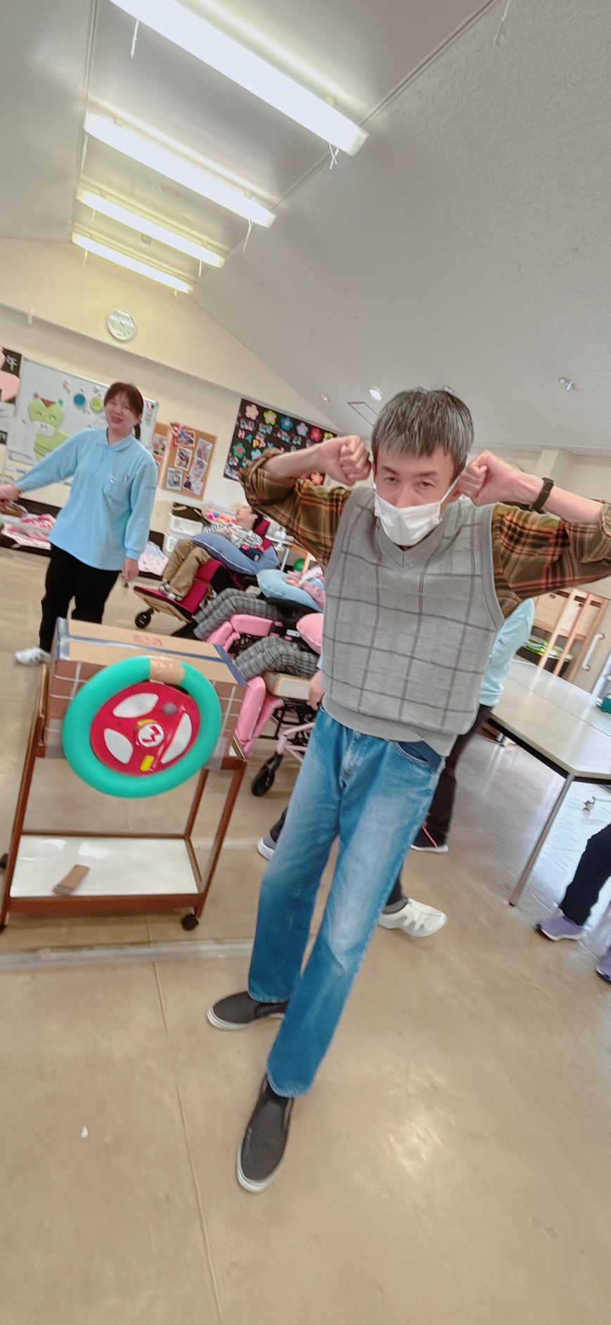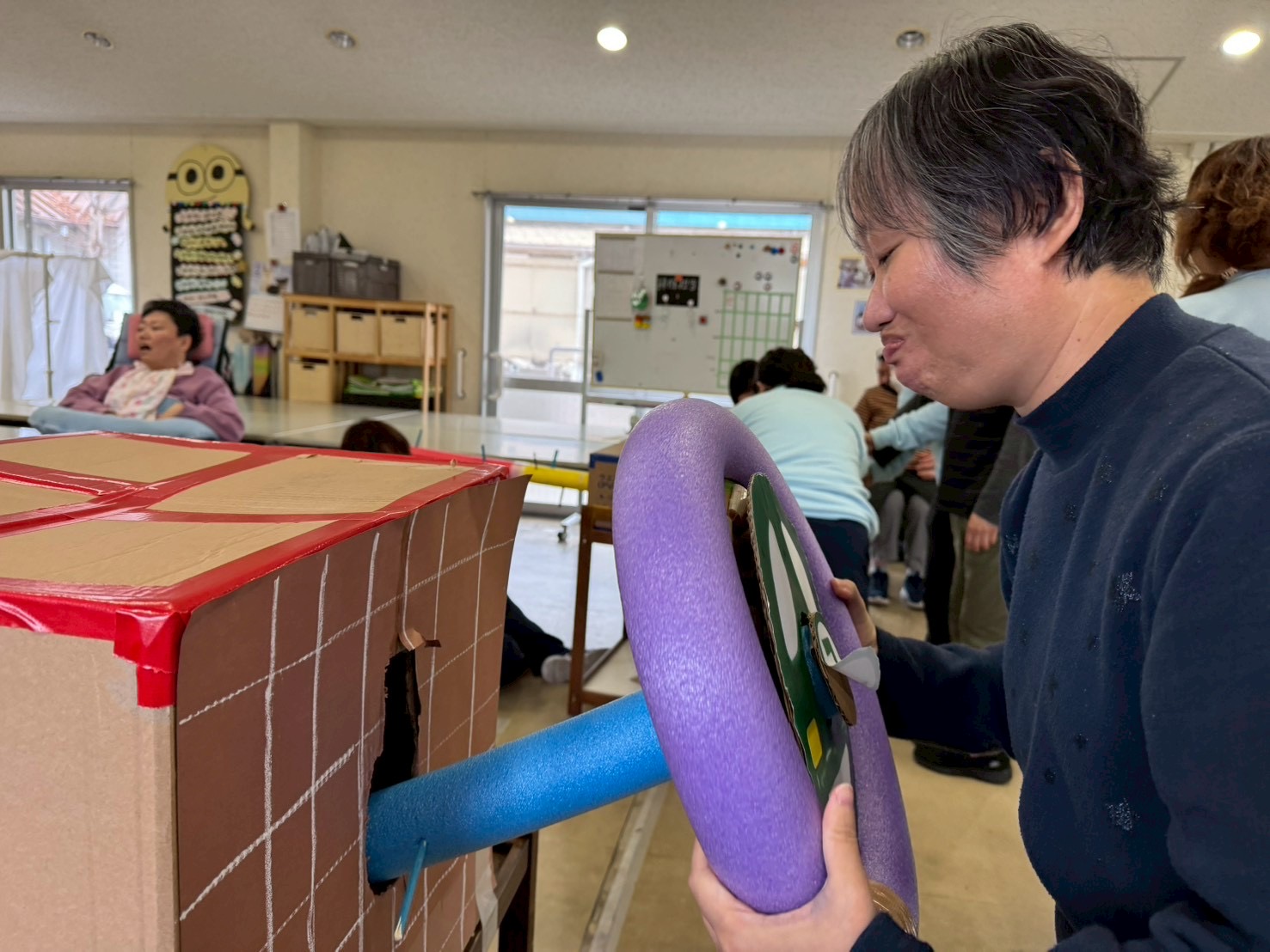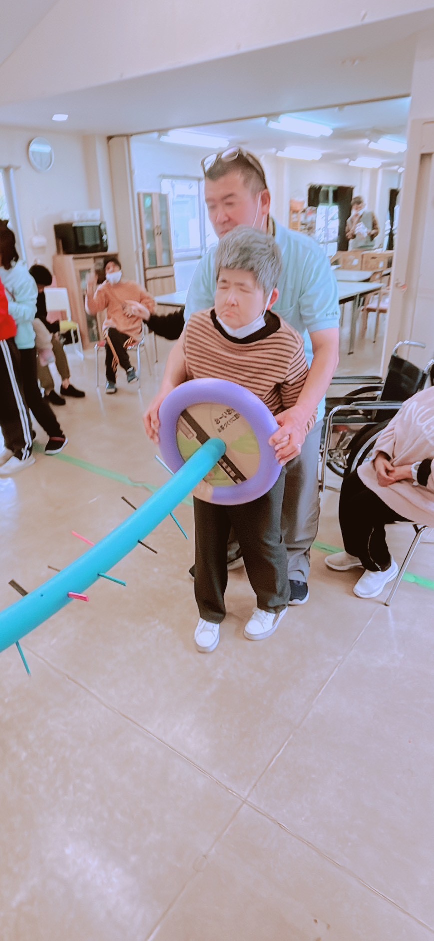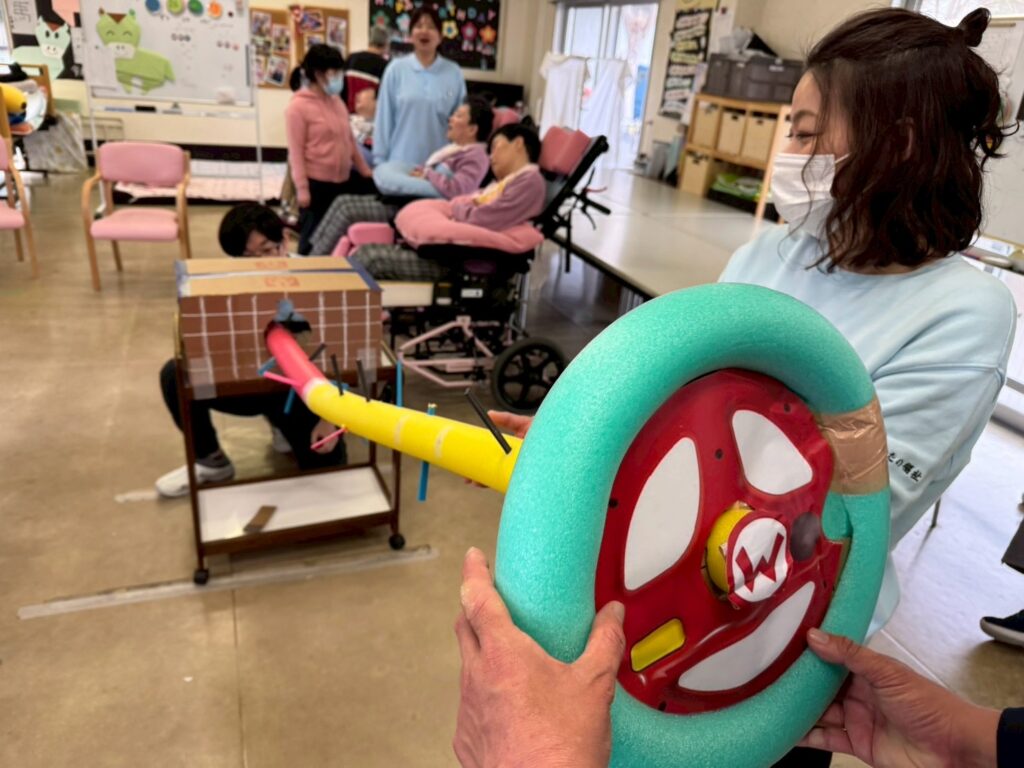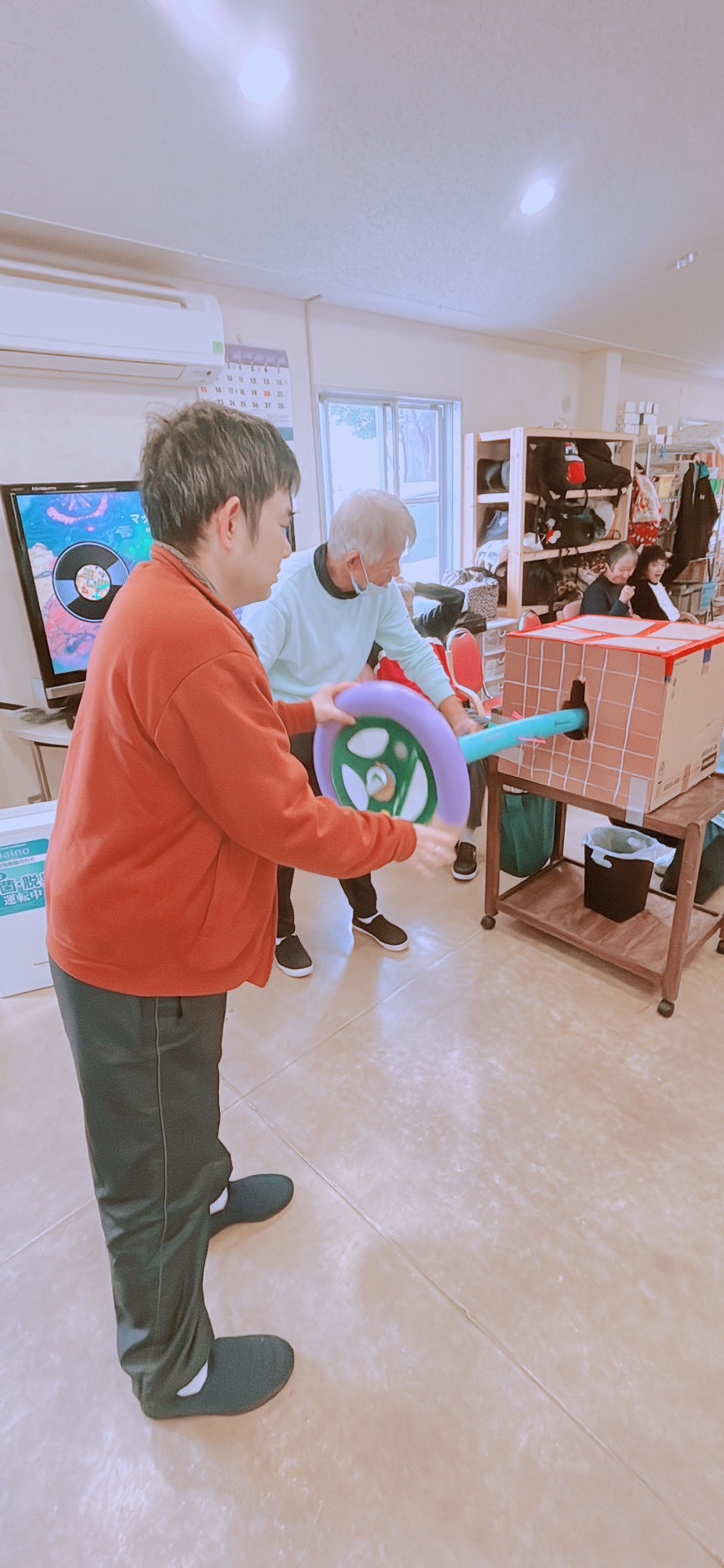 先日、担当者レクリエーションをしました。職員さんが事前に準備されたグッズを見て利用者さんは何をするのかな~とワクワク😀