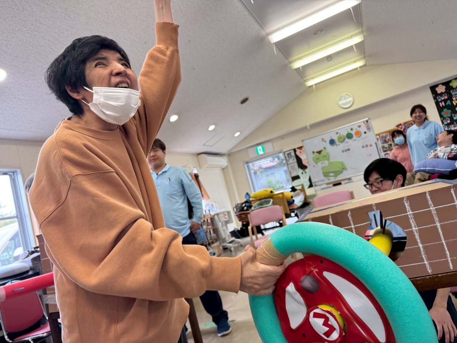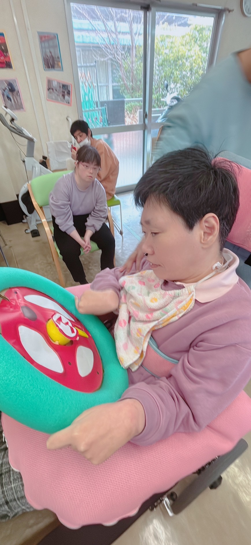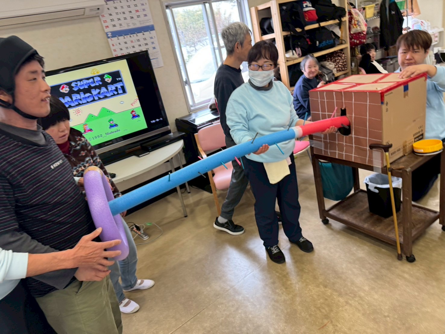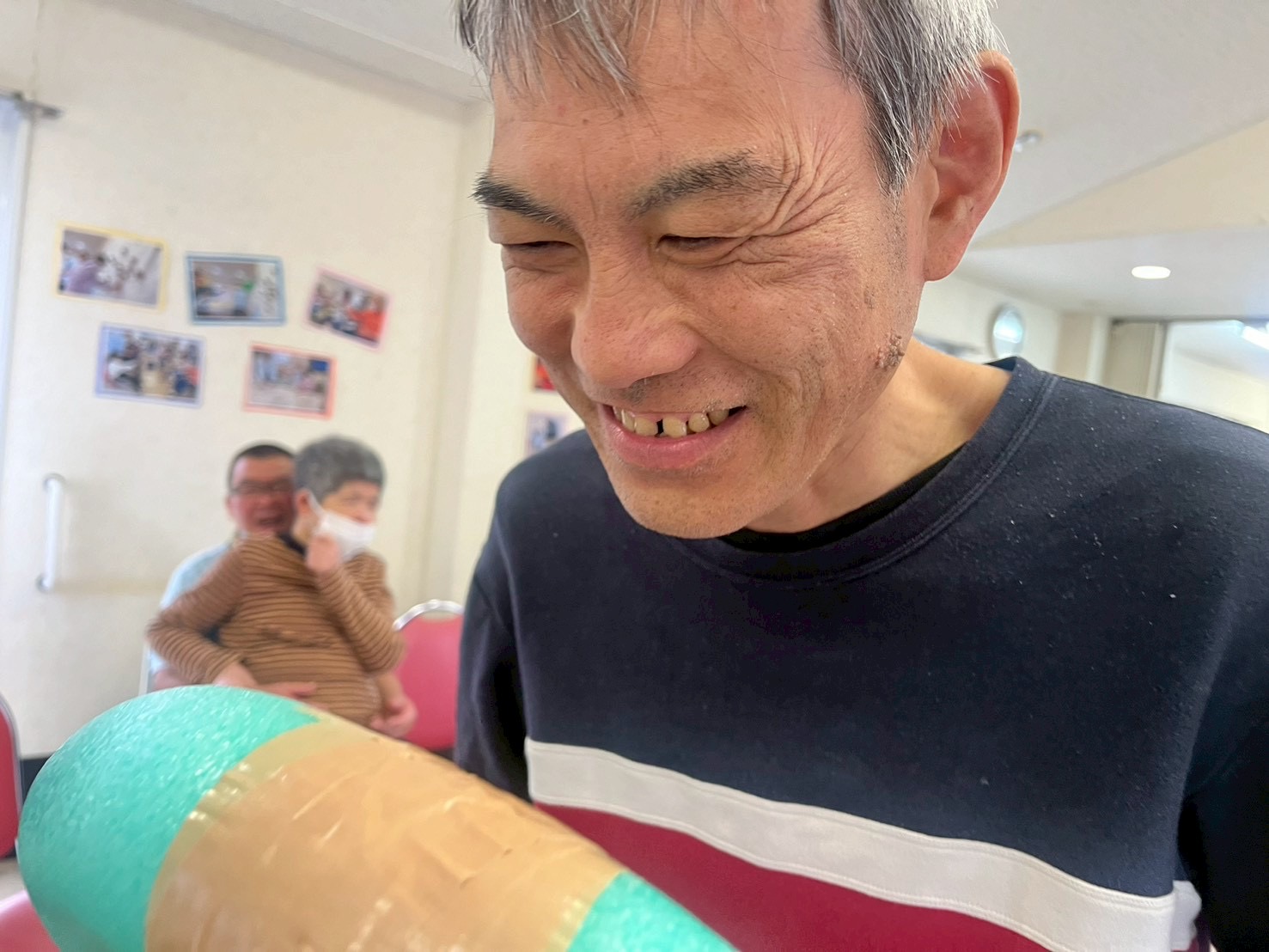 先日、担当者レクリエーションをしました。職員さんが事前に準備されたグッズを見て利用者さんは何をするのかな~とワクワク😀