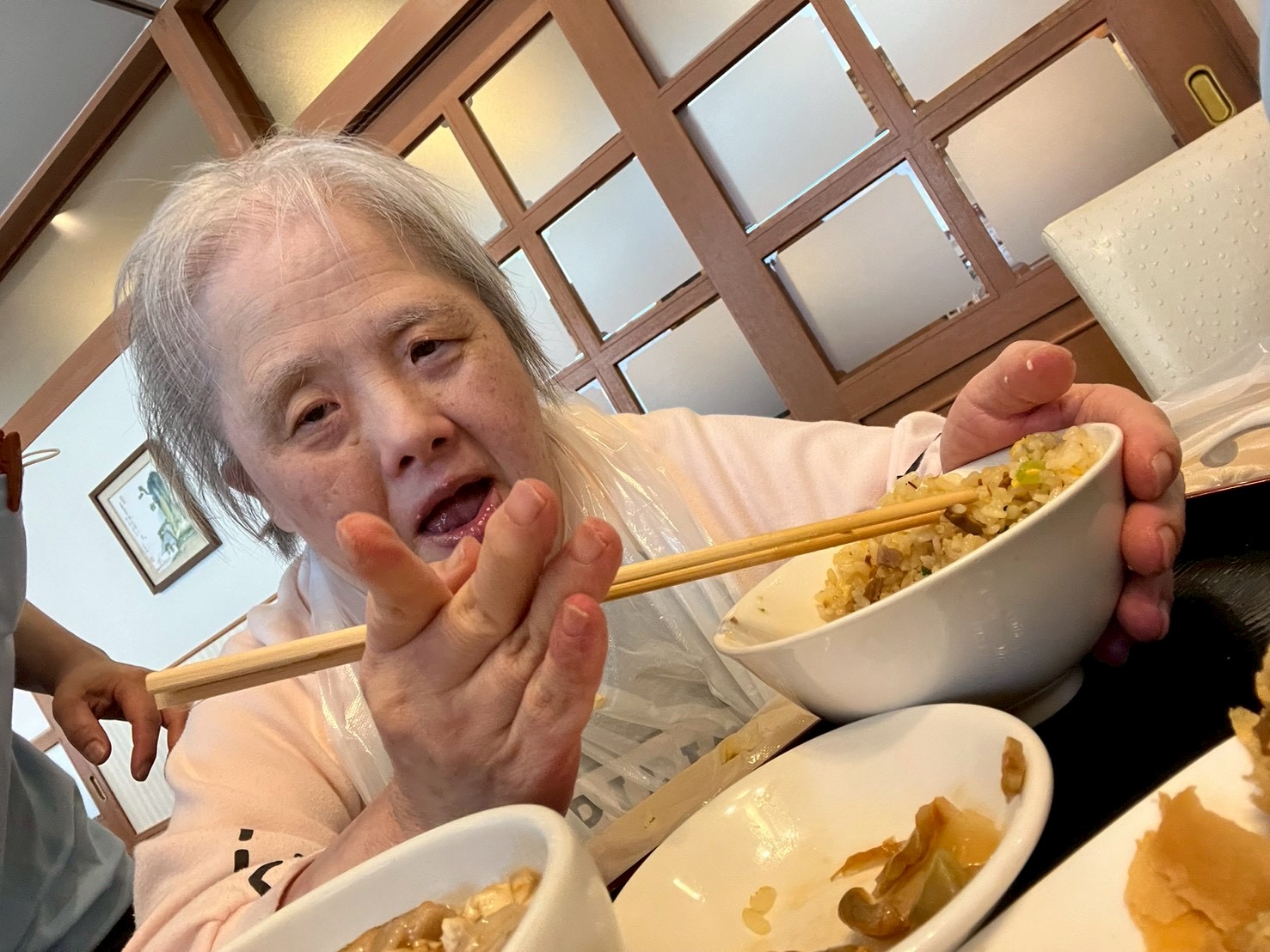 定食が食べきれない利用者さんは天津飯でした🍴